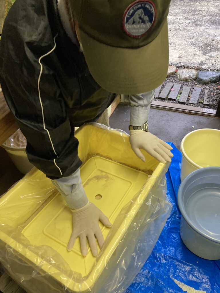 30キロの重しをかけて出来上がり。この後待つこと45日から50日。さて今年の出来具合は❓