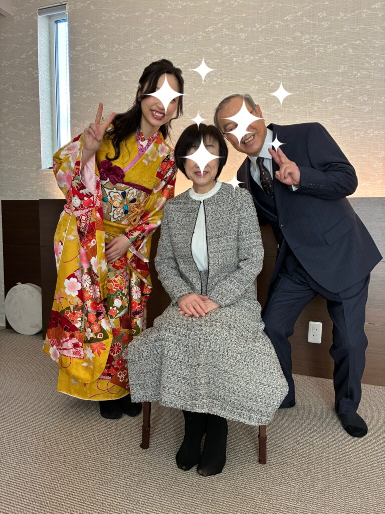 着付けを終えて実家へ行ったら、じぃじとばぁばが正装をしてお待ちかね。