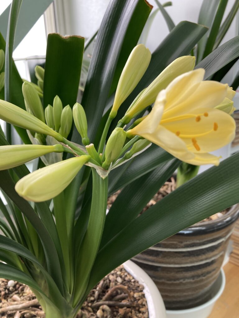 今が一年で最も寒い季節。毎日、雪・雪・雪。気温も一日中マイナスの日が多くなります。その時を狙って咲かせるのが最高。夏の間の保管や、秋の取り込み後のケアーが重要ポイント。でなければこの時期に合わせて咲かせることはできません。相当こだわる人は1月1日の元日に咲かせるのだそうです。私はそこまでの技術はないので、花の少ないこの時期に咲かせるのを目標に、毎日面倒を見てきました。その功あって今年も花をつけてくれました。何と10株のうち8株に花芽が付きました。そして第一弾が咲き始めました。