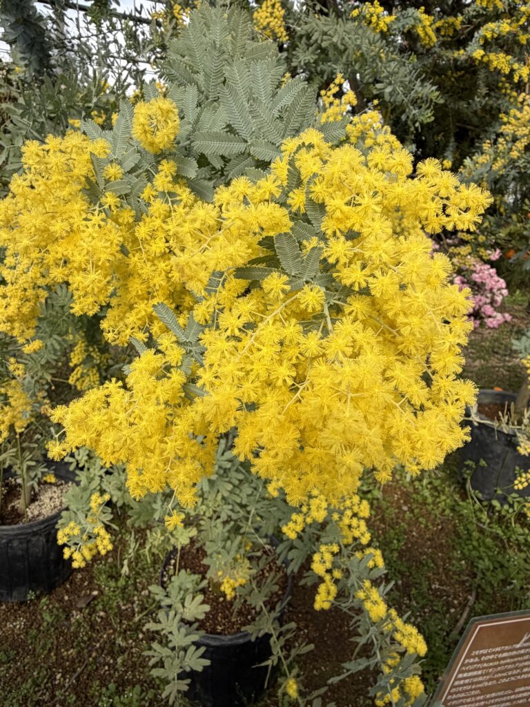 でも、なんといってもこの地植えのミモザの大きさに驚き!勝手にユキヤナギくらいの大きさだと思っていたけど、こんなに大木になるんだと…そして満開の花は切り花とは違い、ふわふわしてかわいい💛