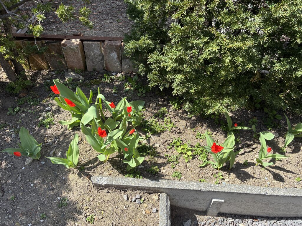 私は春一番に咲くこのチュウリップが大好きです。色鮮やかな朱色。ケイアイカラー。